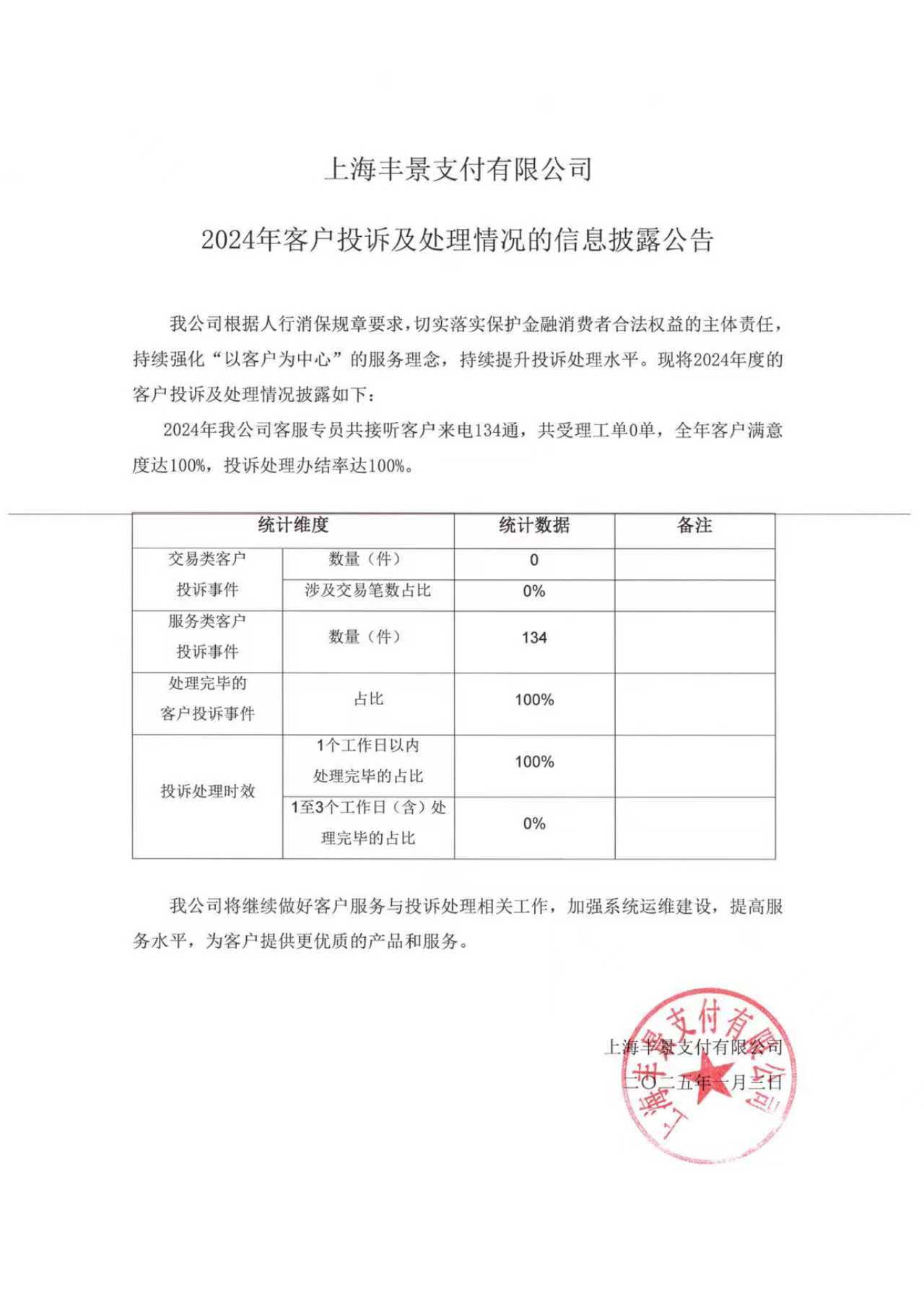 上海丰景支付有限公司 已获人民银行颁发的《支付业务许可证》。